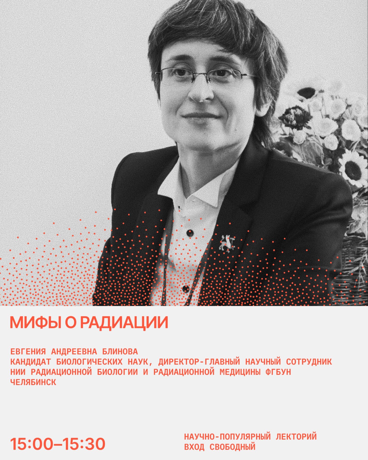 — «Мифы о радиации»: вместе с Евгенией Блиновой развеем самые популярные мифы о радиации: ее исключительный вред, облученные предметы и продукты как передатчики радиации, порожденные радиацией двухголовые мутанты и гигантские грибы.